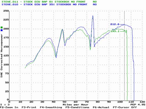 stock box by .6 HP in 1st, 2.8 in 2nd, but looses to